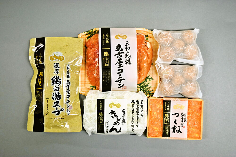 白濁するまで、じっくりと煮込んだ鶏ガラベースの白湯鍋スープに、名古屋コーチンの弾力とコクがある肉質がマッチした鍋セットです。